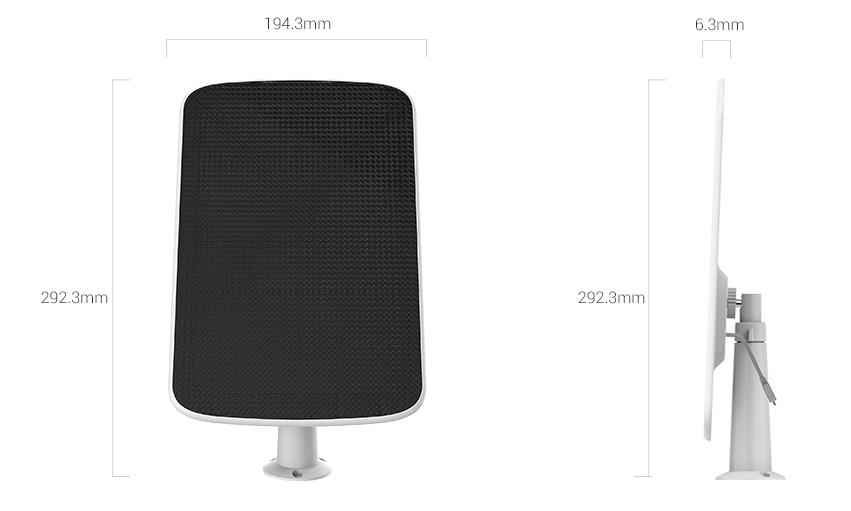 Doté d’un cadre durable et de vis en acier inoxydable, le panneau solaire EZVIZ résiste sans problème à la pluie, à la poussière, à la neige et au soleil. Vous pouvez ainsi bénéficier de l’énergie inépuisable du soleil.